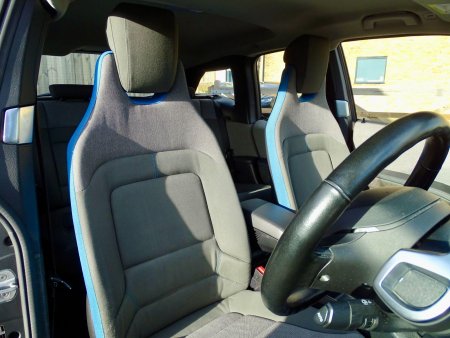 Bumpers - Body Colour, Cabin Pre-Conditioning via iDrive or BMW i Remote App, Central Locking Switch, Check Control Warning System for Monitoring of Lights and Door-Luggage Compartment Open Warning, Child Seat ISOFIX Attachment - Rear x2, Comfort Package, Contrast Highlights in BMW i Blue - Kidney Grille Surrounds and Highlighting Below Doors, Crash Sensor, Cruise Control with Brake Function, Cupholders - Centre, DAB Digital Radio, DC Rapid Charge Preparation, DSC - Dynamic Stability Control Plus, Daytime Running Lights - LED with BMW i Design, Direction Indicator - Side Repeaters - Integrated in Exterior Mirrors, Direction Indicator Lights - Clear Lenses, Door Handles - Body Colour, Door Mirrors - High Gloss Black and Electrically Adjustable, Door Sill Finishers - BMW Designation - Black, Drive Performance Control with ECO PRO Plus - ECO PRO and Comfort Modes, Dynamic Brake Lights, ECO PRO Mode, ECO PRO Plus Mode, EPS - Electric Power Steering with Servotronic, Electric Windows - Front with Open-Close Fingertip Control - Anti-Trap Facility and Comfort Closing Function, Electrically Operated Parking Brake, Electronic Display of Drivetrain Information and Battery Range and Temperature, Electronic Drive Selector Located on Steering Column to Select: Drive-Reverse-Neutral-Park, Exhaust Tailpipe - Hidden, Extended Storage, Exterior Parts in Contrast High-Gloss Black, First Aid Kit and Warning Triangle, Flap in Rear Side Panel - Right with Push Function to Open, Floor Mats - Velour - Anthracite, Gear Selector Switch Located on Steering Column - Control Lever in Chrome Pearl Grey with Black Leather Inserts, Glove Box with Dividing Level, Grab Handles - Integrated in Roof Lining - Front, Halogen Headlights, Head Restraints - Front and Rear, Heat Protection Glazing with Green Tint, Indicators, Interior Lighting - Front Centre Over Interior Mirror and Rear Centre, Interior Trim - Andesit Silver Matt, Interior World - Atelier, Interior and Exterior Mirrors with Automatic Anti-Dazzle Function, Kidney Grille - Contrast Surround in BMW i Blue with High-Gloss Black Centre, LED Light Elements, Lashing Eyes in Luggage Compartment at Sill x2, Lights-On Warning by Audio Warning Signal When Ignition is Switched Off, Locking Wheel Bolts, Luggage Compartment - Light, Luggage Compartment Access via BMW Roundel, Model Designation, Model Designation - i3 Rear, Multifunction Controls for Steering Wheel, Navigation System - BMW Professional Multimedia, OBC - On-Board Computer, Oil Sensor For Level and Grade - Warning by Check Control System, PDC - Park Distance Control - Rear, Park Assist, Personal Profile, Power Socket - 12V in Luggage Compartment, Pre-Heating of HV with Active Air Flap Control, Rain Sensor with Automatic Headlight Activation, Rear Fog Light, Rear Lights - LED Integrated into Tailgate, Rear Shelf Cover, Rear Spoiler - Black with Integrated LED Brake Light, Rear Window - Integrated into Tailgate, Remote Control Including Integrated Key - 2, Remote Services, Reversing Light in Rear Light Clusters, Roof Mouldings - Body Colour, Seat Belt Security Check for Driver and Front Passenger, Seat Heating for Driver and Front Passenger, Seats - 50-50 Split Folding Rear, Seats - x4 with Individual Seat Designs in the Front and Rear, Shark Fin Aerial, Side Armrests - Front Integrated into Door Trim, Side Impact Protection, Side Windows, Slide Through Light-Weight Front Seats, Start-Stop Button with Comfort Go Keyless Engine Start and Auto Start-Stop Deactivation Button, Steering Wheel - Leather Multifunction Two Spoke - Black with Unique BMW i Blue Accent, Steering-Wheel Column Adjustment - Manual, Storage Compartment - Front Doors, Sun Visors with Illuminated Vanity Mirrors and Ticket Pocket, TPMS - Tyre Pressure Monitoring System, Three-Point Seat Belts - All Seats, Traffic Jam Assistant, Twin Horns, Tyres - Reduced Rolling Resistance, Voice Control of Navigation and Telephone Functions, Window Surrounds - Black, eDrive Designation - Rear, 12V Power Socket - Centre Console, 19in Alloy Wheels - i Light Streamline Star-Spoke Style - 427 with Mixed Tyres, 3.5mm Auxiliary Input Point for Auxiliary Playing Devices, 5.7in Colour TFT Display - Instrument Cluster, AC Fast Charge - Multi Phase Preparation, Active Differential Brake - ADB Sport - Electronic Differential Lock in DSC-Off Mode, Additional Detachable Cupholder, Air Conditioning - Automatic - Single Zone, Airbags, Alarm System - Thatcham 1 with Remote Control and Engine Immobiliser, Armrest - Front - Folding with Storage Compartment, BMW ConnectedDrive Online Services, BMW ConnectedDrive Services and Applications, BMW Emergency Call, BMW Integrated Differential Transmission, BMW Mobility System, BMW Navigation System, BMW Professional Radio, BMW TeleServices, Battery Safety Cut Off - For Drivetrain Battery and 12v Battery, Bluetooth Hands Free with USB Audio Interface, Brake Pad Wear Indicator - Front and Rear, Bumper System - Front and Rear